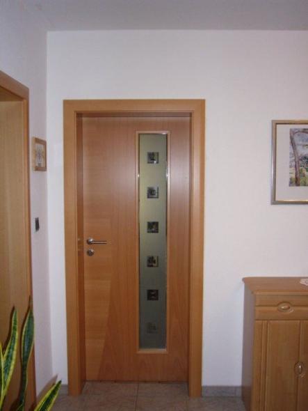 Zimmertüren können sowohl öffnend als auch trennend wirken, in Form von Glas- bzw. Holztüren.